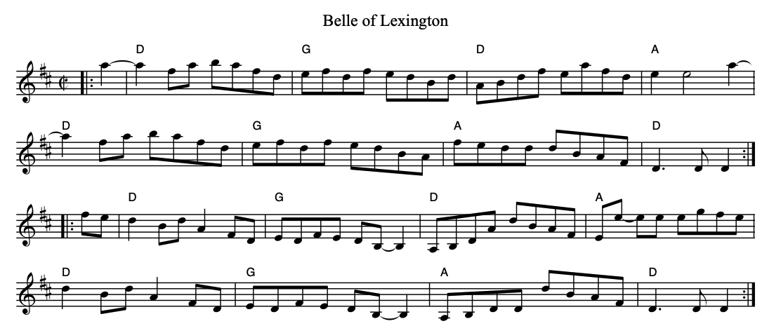 The tune in this form comes from the playing of Emmett Lundy, but it is pretty clearly based on the Irish tune Kitty’s Wedding. Kitty’s Wedding is also the tune which turned into Smith’s Reel, but I don’t think I had put together that Belle of Lexington and Smith’s Reel are essentially different flavors of the same tune until I started working on this write-up. I always think it’s interesting to see divergent evolution of a tune in action, and I hope you do as well.