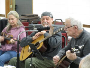 Our circle jam on January 24th also had a good turnout. A good group of people showed up and played a variety of songs. We picked, sang and fiddled the time away. Michael Harris made it to the jam after his successful knee surgery and a couple of months of hard work getting his knee back in shape. Welcome back Michael! Also, we were glad to have welcomed Athena to our circle who is a beginner, but enthusiastic fiddle player taught by longtime member Bella. It’s great to see young people learning and then teaching others to play. Keep up the good work, Athena and Bella! (Bella and Athena are featured in the first picture above for the event on Jan. 3rd and the last picture below. Michael is featured in the 4th picture below.) Here are some pictures from the jam: